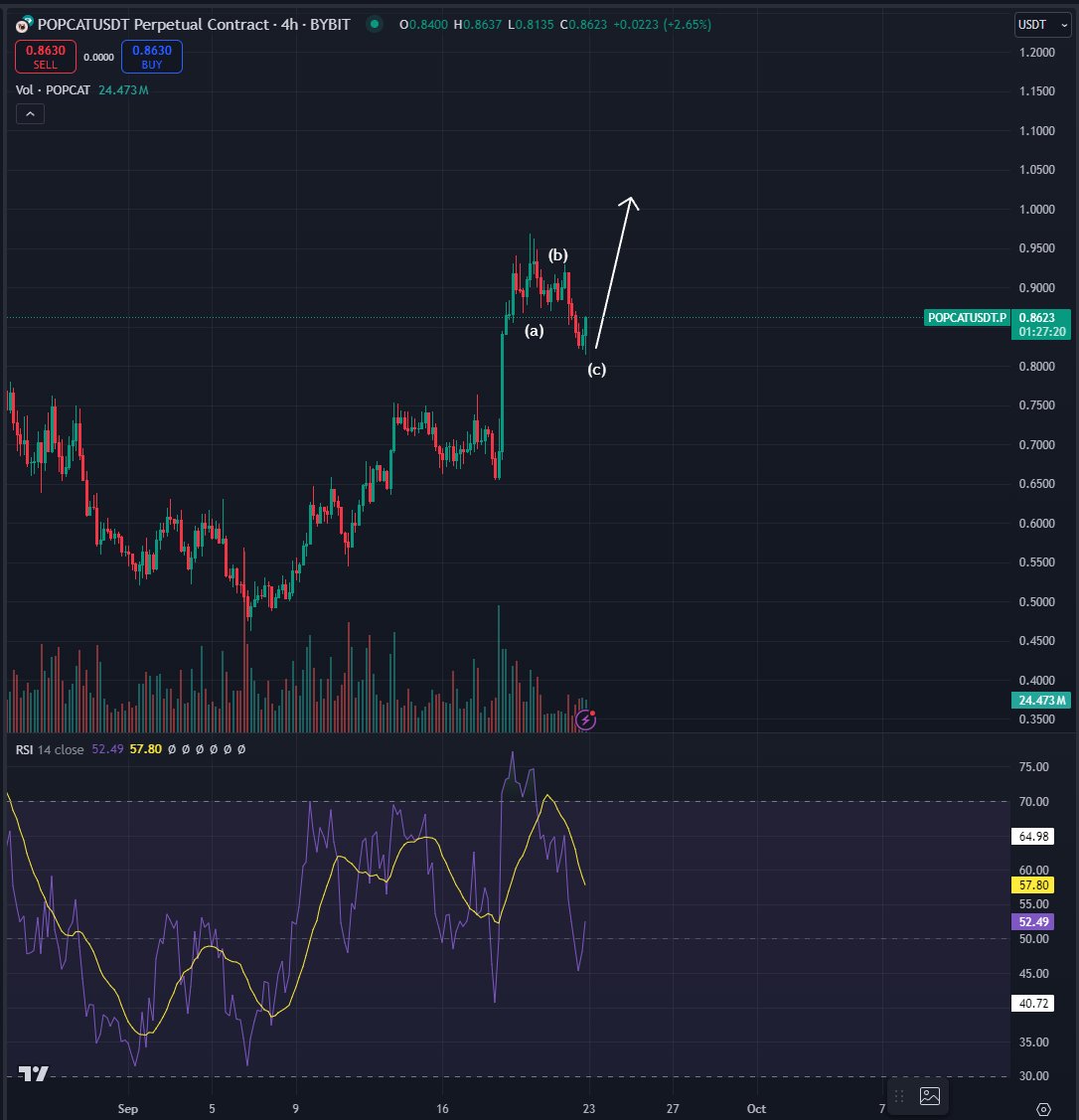 Analist ayrıca radarını iki kedi temalı meme coin’e kilitlemiş durumda. Bluntz’a göre Popcat (POPCAT) ve Simon’s Cat (CAT), ilgili ABC düzeltici dalgalarını tamamladıktan sonra ralliler için hazır. Analist, bir boğa varlığının bir ABC düzeltmesinin tamamlanmasının ardından rallilere tanık olma eğiliminde olduğunu belirten Elliott Wave teorisini kullanıyor. Bu doğrultuda Bluntz, altcoin için şu öngörülerini paylaşıyor: