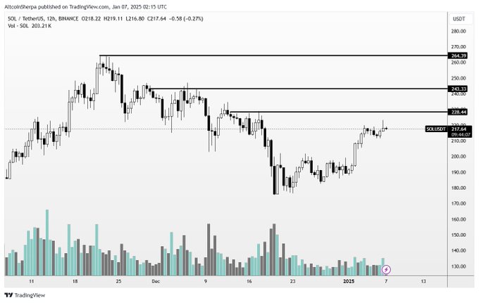 Kriptokoin.com’dan takip ettiğiniz üzere, piyasada şimdilik boğalar güçten düşerken, ayılar güç gösteriyor. Bununla birlikte, bu durumun değişmesi çok da zor değil. Altcoin Sherpa takma adlı analist, Solana’nın (SOL) önümüzdeki haftalarda ve aylarda “çok daha yükseğe” çıkmaya hazır olduğunu söylüyor. Ancak analist, Solana’nın yalnızca Bitcoin’in (BTC) “istikrarlı” kalması halinde yükseleceğini belirtiyor. Analistlere göre, Solana’nın herhangi bir sağlam geri çekilmesi cazip bir giriş fırsatı olacaktır. Gafiğine göre analist, SOL’un 228 dolar, 243 dolar ve 264 dolar dirençlerle karşılaşacağını öne sürüyor. Bu arada altcoin fiyatı yazı sırasında günlük bazda %3 düşüşle 189 dolar seviyesinde seyrediyor.