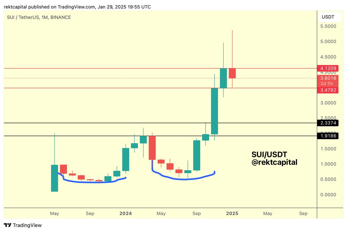 Yeni bir strateji oturumunda, kripto analisti Rekt Capital, katman-1 Blockchain Sui Network’ün (SUI) önde gelen kripto cüzdanı Phantom’dan destek alırken tüm zamanların en yüksek seviyesinin altında konsolide olduğunu söylüyor. SUI, yazı sırasında 4,14 dolardan işlem görüyordu. Altcoin, yıllık bazda %157’nin üzerinde kazanç sağladı. Altcoin için güçlü hamleler bekleyen analist, şu açıklamayı yapıyor: