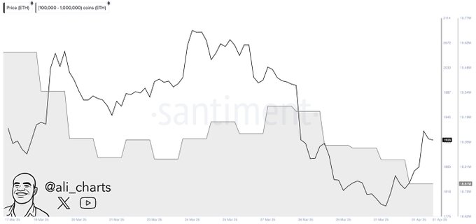 Kripto analiz platformu Santiment’ten alınan verilere atıfta bulunan Ali Martinez, Ethereum balinalarının son iki haftada cari fiyatlarla yaklaşık 1,42 milyar dolar değerinde 760.000 ETH sattığını söylüyor.