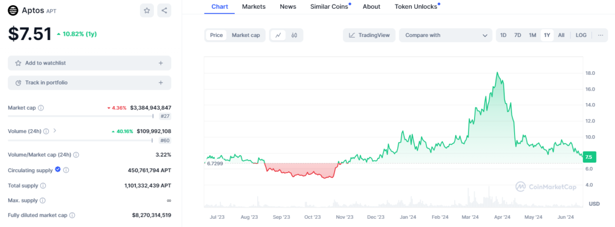 APT yıllık fiyat grafiği ve piyasa verileri. Kaynak: CoinMarketCapAptos’taki kullanıcı işlemlerinin 7 günlük hareketli ortalaması, Mayıs ayı başında 1 milyonun altındayken 47 milyona yükseldi. “Tapos Cat”’in yönlendirdiği bu artış, Aptos’un yüksek işlem talebini karşılama potansiyelini gösteriyor. Kampanya sona ermesine rağmen Aptos’un Microsoft, Google Cloud ve Universal Pictures gibi büyük iş ortaklarıyla entegrasyonu, artan etkisini gösteriyor. Ayrıca Aptos, merkezi olmayan uygulama geliştirmeyi desteklemek için Chainlink’in CCIP ve Data Feeds’ini entegre etti. Altcoin projesi şu anda 3,39 milyar dolarlık piyasa değerine sahip. Ayrıca tokeni 7,50 dolardan işlem görüyor. Aptos, 5 milyar dolar sınırını aşmak için iyi bir konumda duruyor.