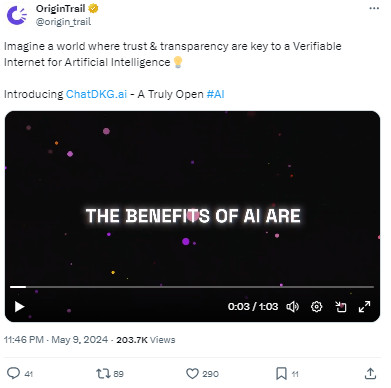 OriginTrail ile yapay zeka kripto sektöründe kalıyoruz. Nvidia raporu, daha fazla yapay zeka projesini keşfetmek için buna değer. OriginTrail merkezi olmayan bir bilgi grafiği ya da DKG kullanıyor. Bu, gerçek dünya varlıklarının verilerini yönetir. Bunu bir Katman 2 Blockchain’le karşılaştırabilirsiniz. Ayrıca NeuroWeb’e de sahiptir. OriginTrail hem RWA hem de AI sektörlerine karışıyor. Bunlar şu anda kriptoda çok umut verici iki sektör. OriginTrail yanlış bilgilendirmeyi ele almayı amaçlıyor. Ayrıca bilginin kaynağını gösterir, böylece doğrulanabilir hale gelir. Ayrıca, bilgiyi daha keşfedilebilir hale getirmek istiyor. Buna RWA’lar da dahil.