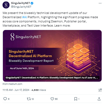 SingularityNET yapay zeka sektöründe faaliyet gösteriyor. RWA sektörü MANTRA Chain gibi, bu da mevcut boğa koşusunun ana sektörlerinden biridir. SingularityNET için en büyük haber, Fetch.ai ve Ocean Protocol ile yakında gerçekleşecek olan birleşmesi. Yeni projenin adı Artificial Superintelligence Alliance. Sonuç olarak, ASI adında yeni bir coin ortaya çıkacak.