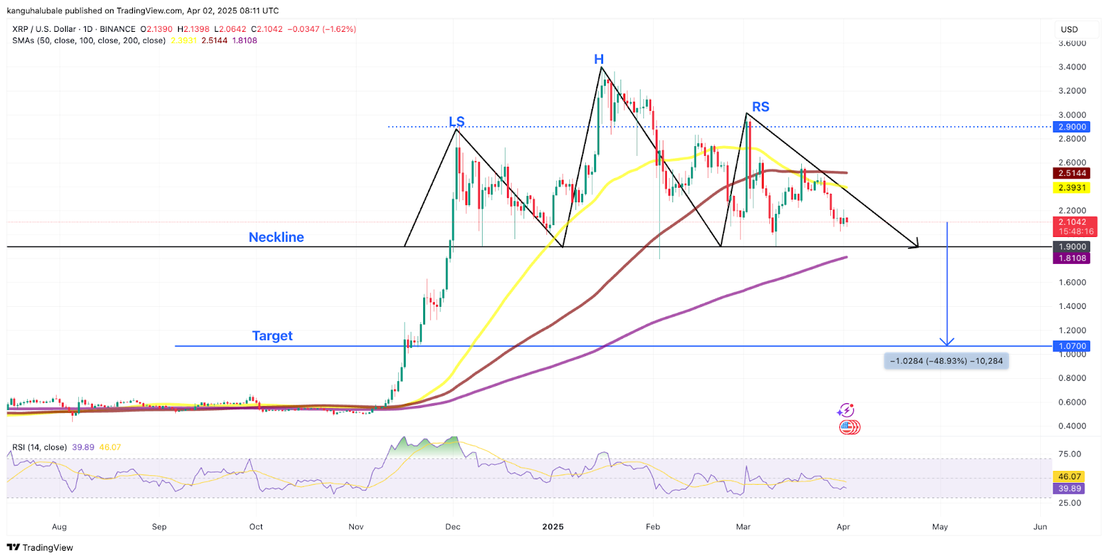 XRP/USD H&S formasyonlu günlük grafik. Kaynak: TradingView