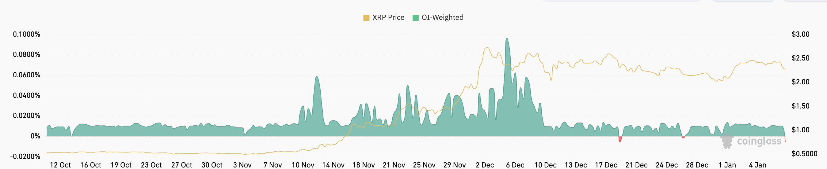 Bu durum, daha önce 18-20 Aralık tarihlerinde yaşanan ve 72.6 milyon dolarlık uzun pozisyon likidasyonu ile %23’lük fiyat düşüşüne yol açan süreci hatırlatıyor. Bunun yanı sıra, XRP’nin fonlama oranlarında da düşüş görülüyor. 7 Ocak’ta haftalık %0.21 olan fonlama oranı, 8 Ocak’ta -%0.11’e geriledi. Bu durum, uzun pozisyonlara yönelik talebin azaldığını ve yatırımcıların daha temkinli hareket ettiğini gösteriyor. Negatif fonlama oranı, piyasanın daha fazla kısa pozisyonla ilgilendiğine işaret ediyor.