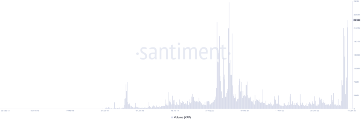 16 Ocak 2025 tarihli bu haber sonrası XRP, işlem hacminde 24 milyar dolara ulaştı. Böylece, Nisan 2021’den bu yana en yüksek seviyesine ulaştı. Bu yüksek hacim, yatırımcıların XRP’ye olan yoğun ilgisini yansıtmakta. Fiyat üzerindeki yukarı yönlü hareketin devam edebileceğini işaret ediyor.