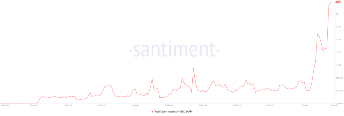 Ek olarak, XRP’nin türev piyasalarındaki açık pozisyon büyüklüğü (open interest) de tüm zamanların en yüksek seviyesi olan 3,4 milyar dolara ulaştı. Bu da, türev piyasalarındaki yatırımcıların XRP Coin fiyatında yükseliş beklediğini gösteriyor. Açık pozisyon büyüklüğünün ralliler sırasında artması, yeni pozisyonların açıldığına işaret eder. Bu durum piyasanın yükselişe olan güvenini pekiştirir.