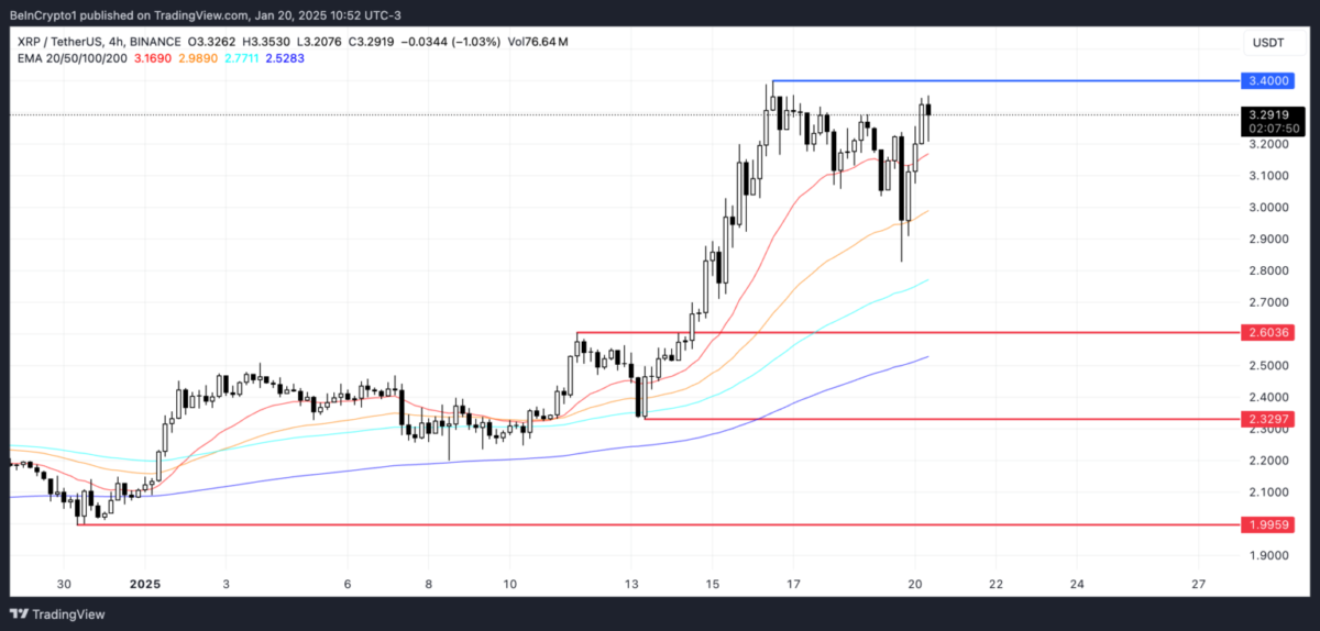 EMA trendleri, XRP için olumlu bir görünüme işaret ediyor. Kısa vadeli EMA çizgilerinin uzun vadeli çizgilerin üzerinde yer alması, yukarı yönlü bir momentumun devam ettiğini gösteriyor. Bu pozitif eğilim güçlenirse XRP’nin fiyatı 3.40 doların üzerini test edebilir ve yeni bir zirveye ulaşabilir.