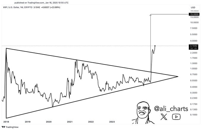 Martinez, uzun vadede XRP’nin 15 doları hedefleyebileceğini de belirtiyor. Aylık grafikte simetrik üçgen formasyonunu kıran XRP, büyük bir hareketin eşiğinde olabilir. Bu tür formasyonlar, piyasanın kararsız olduğu dönemlerde oluşur ve kırılma yaşandığında güçlü bir trend ortaya çıkar. Eğer XRP, teknik analizde öngörülen hareketi tamamlarsa, bu durum yatırımcılar için büyük bir fırsat yaratabilir. Ancak, piyasa dalgalanmalarının takip edilmesi gerektiği konusunda uzmanlar uyarıyor.