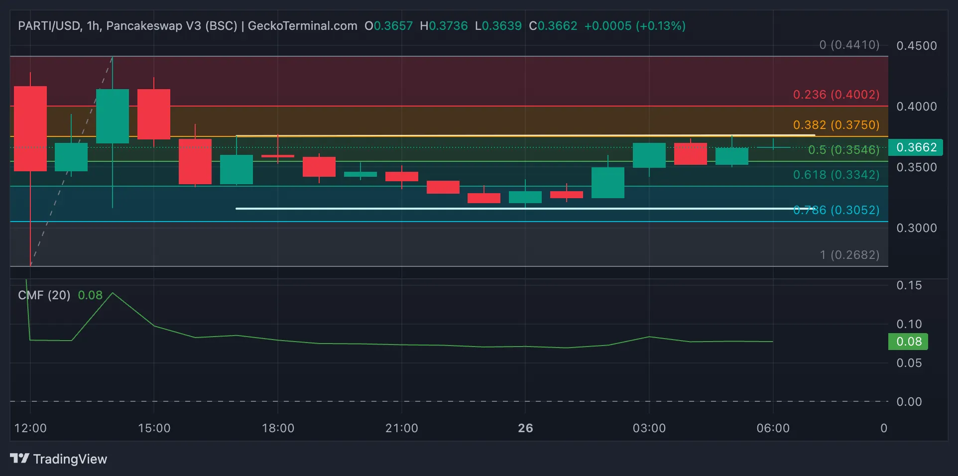 Bu konsolidasyon, piyasada güçlü bir alım ya da satım baskısı olmadığını gösteren bir eğilim olan Chaikin Para Akışındaki (CMF) madeni paranın düzlüğü ile yansıtılıyor. Bu durum, ne PARTI boğalarının ne de ayılarının tam kontrole sahip olduğunu ve fiyat hareketindeki kararsızlığı veya konsolidasyonu yansıttığını gösteriyor. Talep güçlenir ve PARTI 0,37 dolarlık direncin üzerine çıkarsa, yükseliş trendini sürdürebilir ve 0,40 dolara tırmanabilir. Ancak, satıcılar hakimiyet kazanır ve kar alımları artarsa, PARTI 0,35 doların altına inebilir ve 0,33 dolara düşebilir.