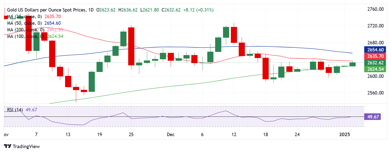 Altın fiyatı Perşembe günü 2025’i başlatarak ön ayak üzerinde işlem görüyor. Altın alıcıları, geniş tabanlı ABD Doları (USD) gücünün ortasında meydan okuyor. Böylece, sarı metal 2.600 dolar kilit seviyesinden uzun süreli bir toparlanma ile 2.650 doların üstünü hedefliyor.