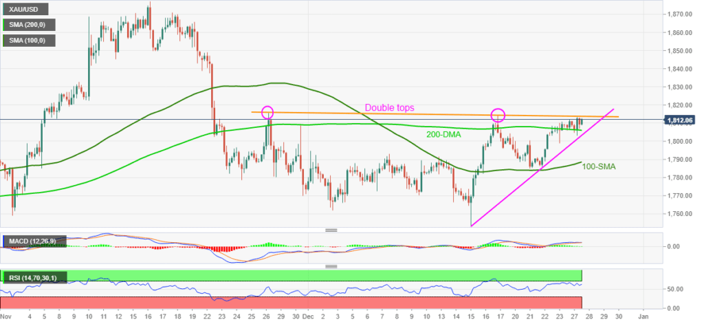 Altın fiyatı, önceki gün haftalık zirvesini tazeledikten sonra Salı günkü Asya seansı sırasında 1.812 dolar civarında güçleniyor. Kriptokoin.com olarak bildirdiğimiz üzere, sarı metal, 2021’in son günlerinde alıcıları umutlu tutmak için piyasanın risk altındaki ruh halini ve düşük ABD doları fiyatlarını neşelendiriyor. Analiste göre, hafif takvim ve tatil havası kıymetli metalin performansını kısıtlasa bile, Omicron varyantının hafiflemesi ve teşvik umutları, en son piyasa iyimserliği için ana katalizörler olarak gösterilebilir.